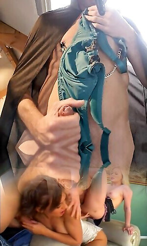 Naughty husband wearing wifes green lingerie