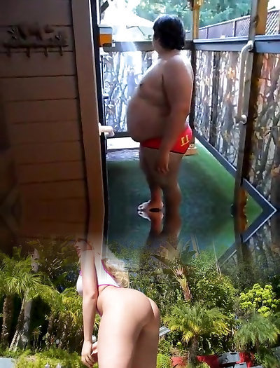 Overweight dude in pool 10:31