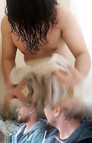 Lad Frot Man Meat with towels till heavy orgasm & bellowing