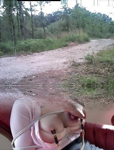 Walking shaved pierced cock