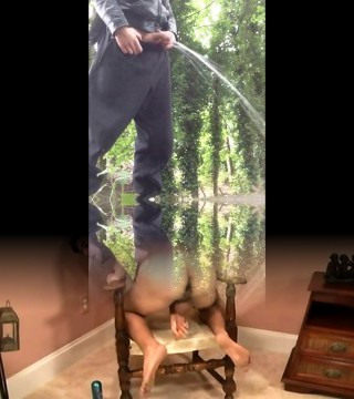 Otter mixes pissing fetish with blowjob for his own pleasure